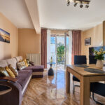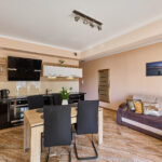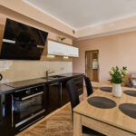 Apartament wyposażony jest w przestronny salon z częścią wypoczynkową, komfortową sypialnię, nowoczesny aneks kuchenny z pełnym wyposażeniem oraz elegancką łazienkę.