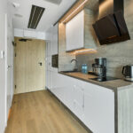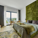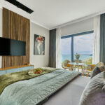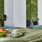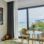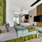 Studio LONDON z widokiem na morze to przestrzeń, w której nowoczesny design spotyka się z subtelną elegancją. Wnętrze zachwyca harmonią oliwkowych i zielonych tonów, które tworzą przytulną, a zarazem luksusową atmosferę. Każdy element wystroju został starannie dopasowany, aby zapewnić Gościom pełen komfort oraz estetyczną przyjemność z pobytu.