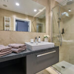 Wnętrze apartamentu inspirowane jest stylem londyńskiej elegancji – dominują tu jasne barwy, subtelne detale i starannie dobrane dodatki, tworzące atmosferę spokoju i szyku. Przestronny salon z aneksem kuchennym zapewnia pełną swobodę wypoczynku, a duże okna i balkon z widokiem na morze nadają przestrzeni wyjątkowego charakteru.